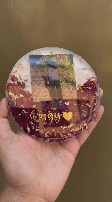 Our Mini Memory Frame is a handcrafted resin photo keepsake designed to preserve your favourite picture in a cute and compact display. Perfect for desks, study tables, bedside corners, or gifting, it keeps a special moment close to you every day.